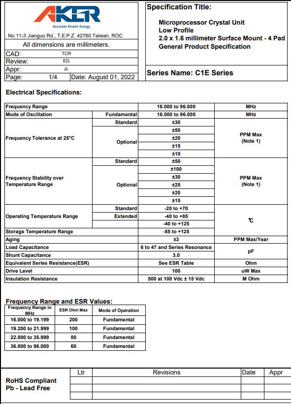 C1E-96.000-8-1216-X2-R,96MHz,2016mm,臺(tái)灣AKER安基晶振,參數(shù)圖