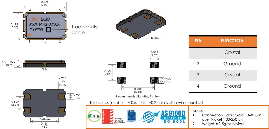 Bliley晶振,6G通訊設備晶振,BQCSA-16.000MF-BCDGT四腳晶振,美國Bliley晶振公司,貼片晶振,石英晶振,6G物聯網晶振,高精度儀器晶振,高品質晶振,7050晶振,四腳晶振,以太網晶振,無源晶振,SMD封裝,標準5X7mm包裝尺寸,高溫下高穩定性
