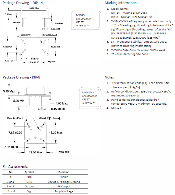 | MXO45-3C-13M0000 | CTS晶振 | MXO45 | 13MHz | 5V | ±50ppm | -20°C ~ 70°C |