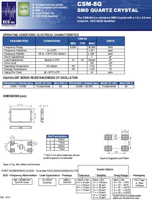 | ECS-240-18-20BQ-DS | CSM-8Q | 24MHz | ±100ppm | ±30ppm | 18pF | -40°C ~ 125°C |