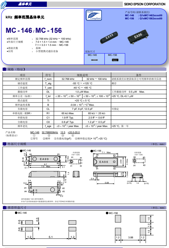 Q13MC1462000200|12.5pf|32.768KHz|7015mm,Q13MC1462000200晶振,愛普生日本進口晶振,負載電容12.5pf,頻率32.768KHz,尺寸7015mm,小型便攜式通信設備晶振,錄音機晶振,智能音箱晶振,家電影音系統晶振,智能手表晶振.