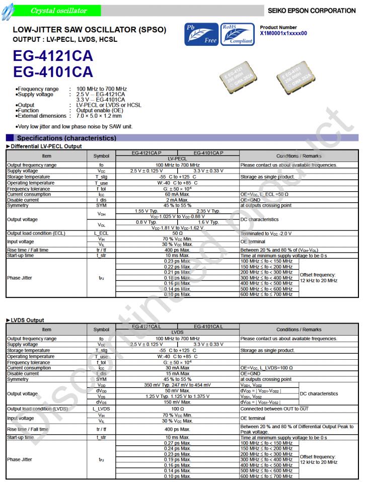 | X1M0001410013 | EG-4101CA | 100.000000 MHz | 7.00 x 5.00 x 1.20 mm | LV-PECL | 2.970 to 3.630 V |