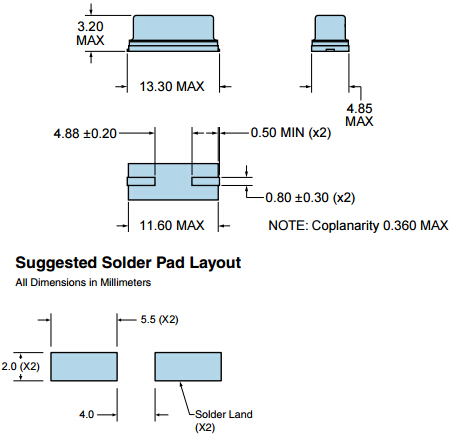 Ecliptek日蝕晶振E1S,E1SJA18-25.000M TR貼片晶振,E1SJA18-6.000M TR,無源晶振,尺寸圖
