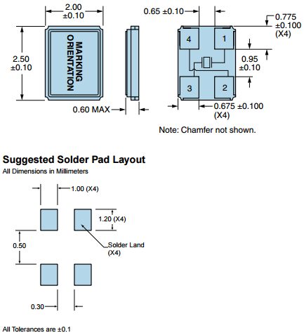 Ecliptek日蝕EA2025石英晶振,EA2025MA10-16.000M TR小體積晶振,EA2025JA18-30.000M TR,貼片諧振器,尺寸圖