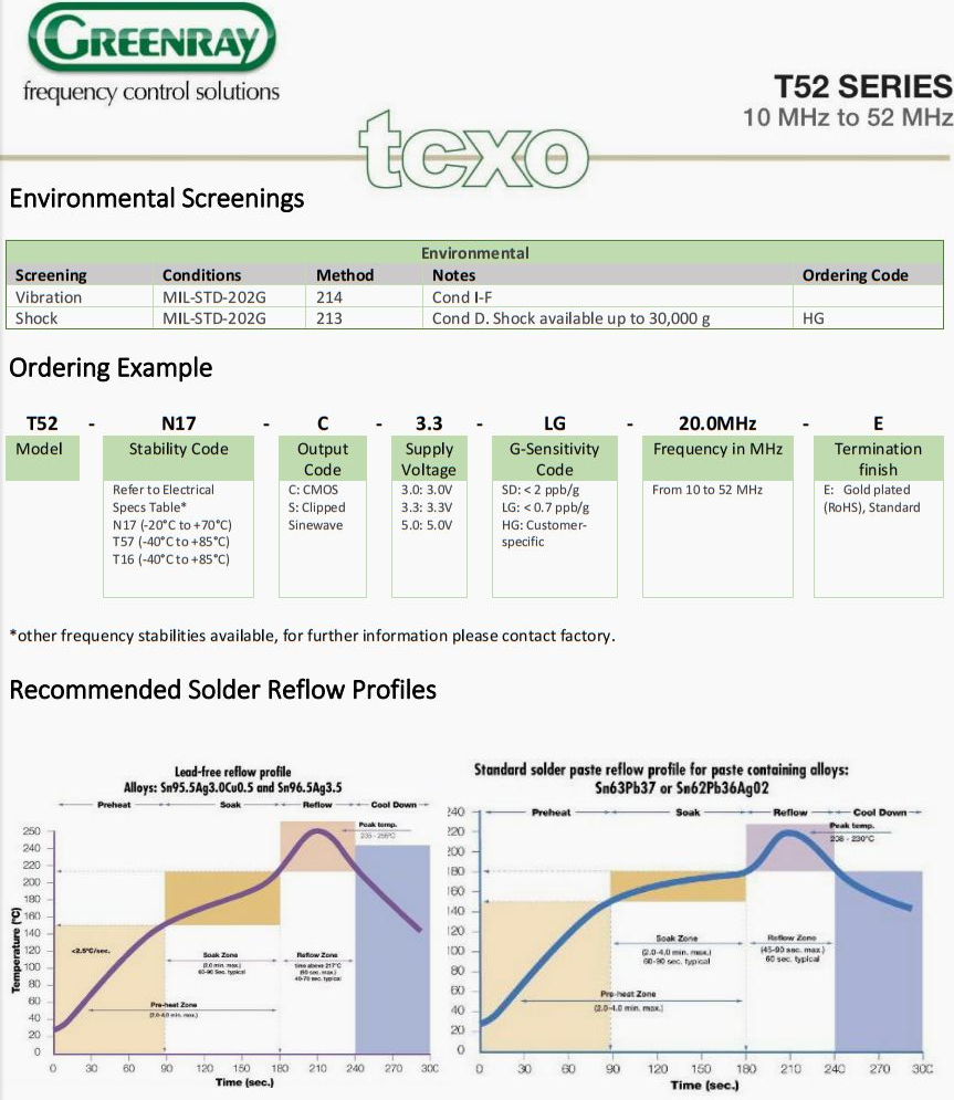 Greenray晶振,溫補(bǔ)6G信號(hào)發(fā)射器晶振,T52-N17-C-3.3-LG-28.0MHz-E八腳晶振,美國(guó)格林雷晶振公司,歐美晶振,石英晶振,貼片晶振,有源晶振,TCXO晶振,八腳晶振,高精度晶振,進(jìn)口晶振,6G無(wú)線通信晶振,Greenray Industries的T52系列TCXO已開(kāi)發(fā)為參考振蕩器,用于要求低噪聲,低功耗,緊密穩(wěn)定性,溫度和緊湊占地的定時(shí)應(yīng)用。特點(diǎn):小巧堅(jiān)固的5.0 x 3.2 mm封裝,可承受高達(dá)30,000 g的振動(dòng)和高沖擊,在- 20至+70°C范圍內(nèi)的溫度穩(wěn)定性為±0.1 ppm, 10年以上的長(zhǎng)期老化< 5 ppm,低加速度靈敏度< 0.7 ppb/g,低功耗,低至2mA,實(shí)現(xiàn)可靠的電池供電性能增益。低相位噪聲,應(yīng)用。采購(gòu)產(chǎn)品電信,高沖擊電子,移動(dòng)無(wú)線電,移動(dòng)儀器,機(jī)載通信,無(wú)線通信,微波接收器品規(guī)格參數(shù)圖.jpg)