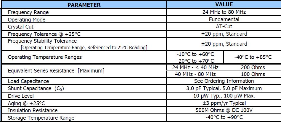 標(biāo)準(zhǔn)1.6毫米x 1.2毫米縫焊包,基本晶體設(shè)計(jì),24 - 80 MHz頻率范圍,頻率公差,±20 ppm標(biāo)準(zhǔn),頻率穩(wěn)定度,±20 ppm標(biāo)準(zhǔn),操作溫度為-40°C + 85°C,磁帶和卷軸包裝標(biāo)準(zhǔn),eia - 481,符合RoHS /綠(6/6).
