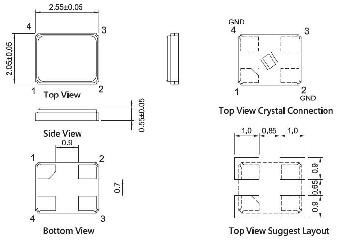 4.晶振外殼需要接地時,應該確保外殼和引腳不被意外連通而導致短路.從而導致晶體不起振.