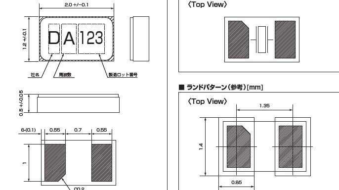 | 尺寸(mm) | 2.0×1.2×0.5(高:最大為0.55mm)。 |