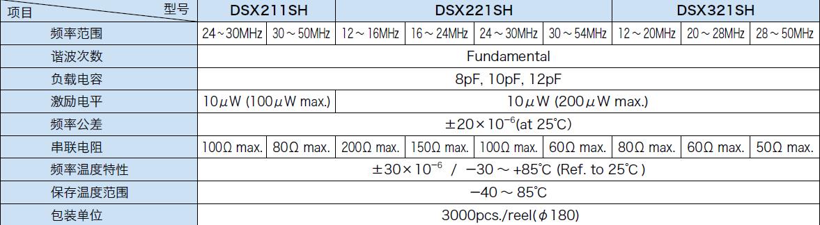 石英晶體諧振器DSX321SH,KDS通信機晶振,無源晶振,晶振本身超小型,薄型,重量輕,晶體具有優良的耐環境特性,如耐熱性,耐沖擊性,小型·薄型,SMD晶體諧振器 DSX211SH:2016尺寸,厚度0.45mm,耐熱性卓越,高精度,高可靠性,支持廣泛的頻率,無需防濕包裝管理,Moisture Sensitivity Level,LEVEL1(IPC/JEDEC J-STD-033),依據AEC-Q200.
