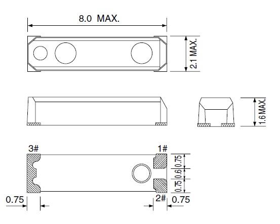 - 尺寸:8.0x2.1x1.6mm詳情請參考PDF資料
