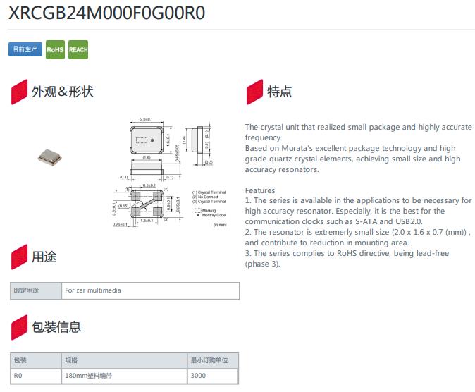 | XRCGB24M576F0Z00R0 | HCR2016 | 24.5760MHz | ±100ppm | ±100ppm | 150Ω | 6pF | -40℃ to 100℃ |