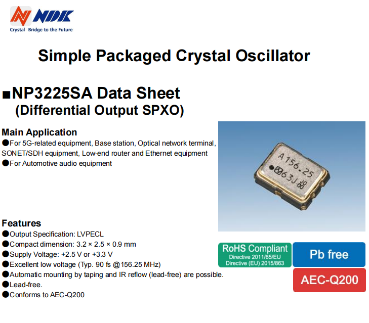 | NP3225SA | 156.25MHZ | NSC5189A | 3.2x2.5 | LVPECL | -40?+105 | +2.5±0.125 |