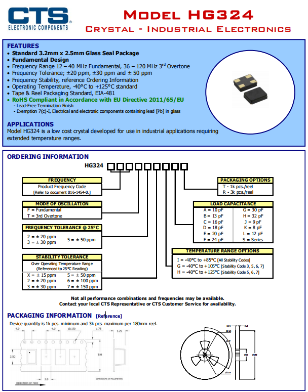 HG324240F23GCT晶振就是CTS晶振公司為需要擴(kuò)展溫度范圍的工業(yè)應(yīng)用開(kāi)發(fā)的一款型號(hào)為HG324的無(wú)源晶振,石英晶體,尺寸3.2*2.5mm,頻率范圍12·120MHz,工作溫度可以選-40~125°C,-40~105°C,-40~85°C,頻率穩(wěn)定性強(qiáng),體積小,耐熱性好,是一種低成本的SMD石英晶體,由于它用途廣泛,一經(jīng)上市,就受到了廣大客戶群體的喜歡。