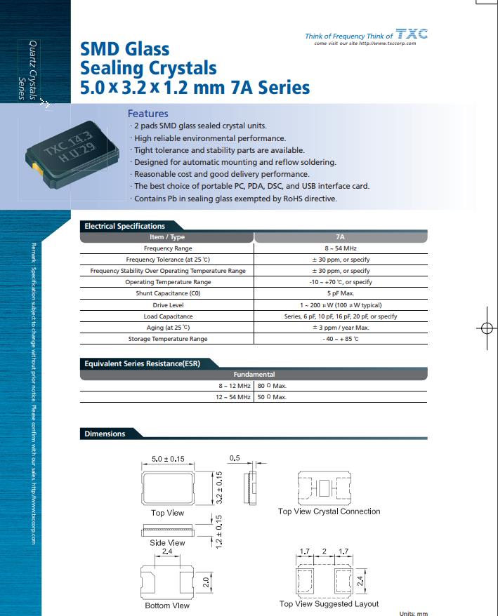 7A-16.000MAAJ-T-5032mm-臺灣TXC石英晶振-16.000MHz,7A-16.000MAAJ-T晶振,5032mm晶振,7A進口晶體,臺灣TXC石英晶振,頻率16.000MHz,高精度晶振,晶體諧振器,便攜式設備晶振,智能音響晶振,USB接口晶振,移動電話晶振.
