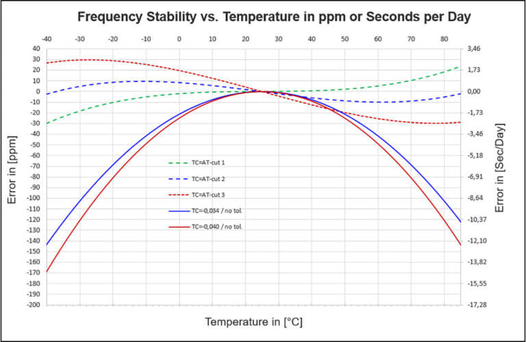 與經典音叉晶體相比,32.768 kHz振蕩器有一些主要優勢:它們更容易使用,并且由于溫度補償和AT切割石英坯的使用,根據型號的不同,比經典音叉晶體更精確。然而,音叉晶體仍然是需要的:在適當設計的電路中,它們也能確保穩定的頻率。