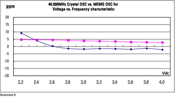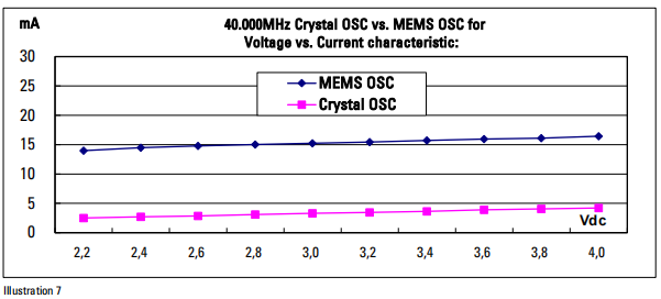 | 3. Voltage vs. Current characteristics | Crystal OSC is better as MEMS OSC (pls, refer to “test data”) | ||