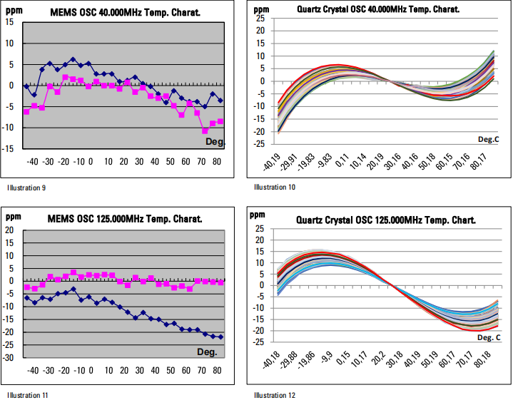 | 4. Temperature | Crystal OSC is better as MEMS OSC (pls, refer to “test data”), that MEMS OSC is jagged in a short time | ||