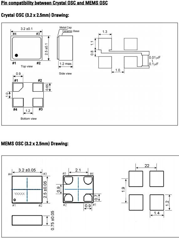 | Pin Layout | Pin and pin function can might compatible between Crystal OSC and MEMS OSC | ||