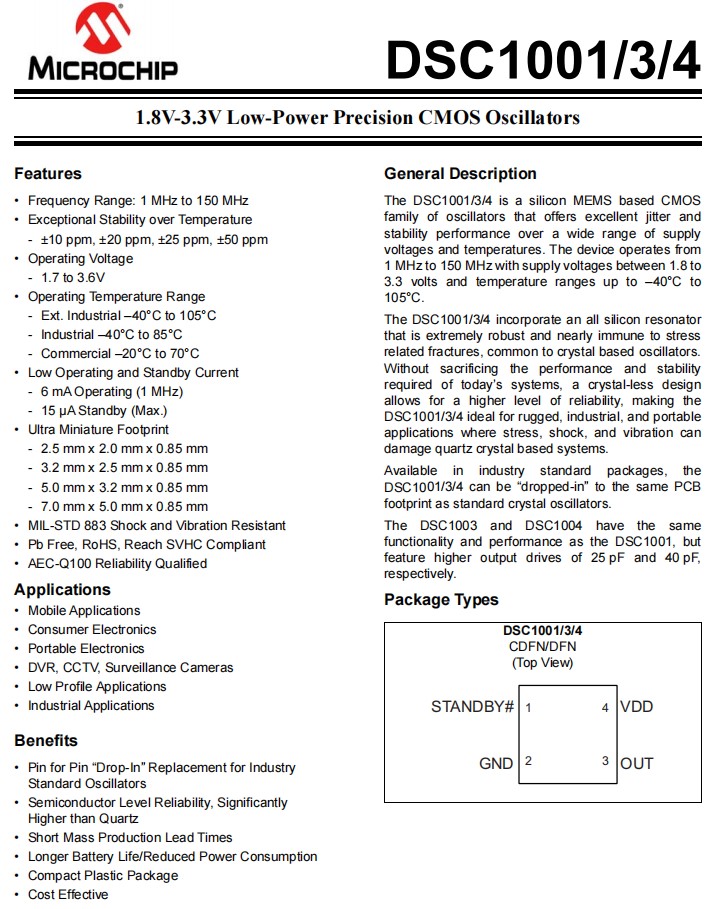 | DSC1001DE5-018.4320 | Microchip晶振 | DSC1001 | 18.432MHz | 1.8 V ~ 3.3 V |