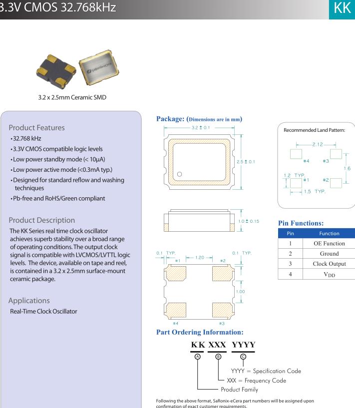 | KK3270051 | Diodes晶振 | SaRonix-eCera™ KK | 32.768kHz | ±25ppm | -40°C ~ 85°C |