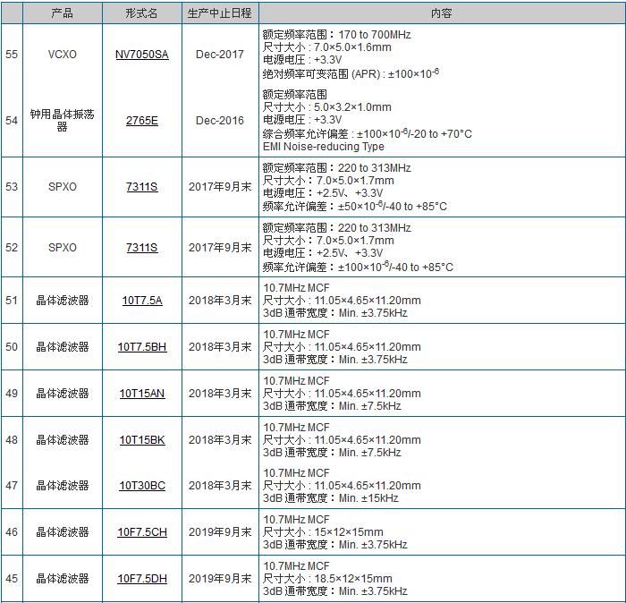 許多人認為購買晶振時最麻煩的莫過于沒有現貨了,這個問題同時也在困擾著我們這些晶振銷售員,畢竟多買出去一點,我們就多一些收入。進口晶振交期周期長是常有的事,不過這些交期長些都算好的了,部分石英晶振因為在市面上找不殼子和晶片,只能停止生產。例如之前日本的NDK晶振公司就公布了55款停產晶振型號,同時還有一些可替代原產品的石英晶體料號。