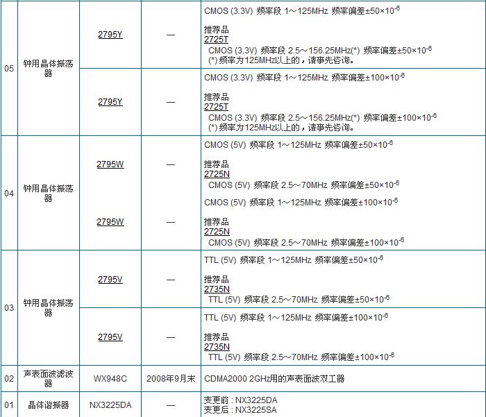 以下是金洛鑫電子為廣大新老客戶整理的NDK晶振停產更新表: