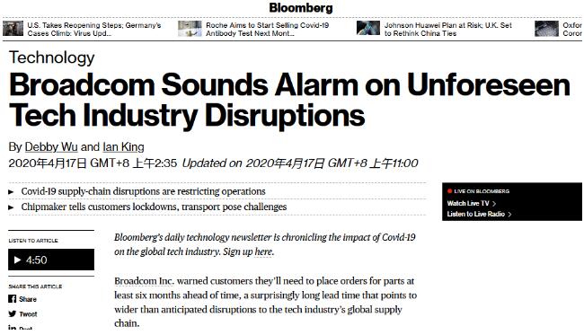 近日,美國一家大型芯片制造品牌博通公司,其銷售副總發了一封郵件,大致內容是由于馬來西亞、泰國、新加坡和菲律賓的封鎖措施正使博通的業務運營遭受嚴格限制甚至被關閉,這些封鎖措施將原本60天~90天的正常交貨時間硬生生延長到至少180天,Mistry建議客戶至少提前26周下單,超長的交貨周期表明疫情對芯片行業全球供應鏈的破壞要比預期嚴重.消息一出短時間內便擴散到國內市場,引起不少業界人士的擔憂,交期延長了一半,對于任何工廠來說都是耗不起的時間成本. 雖然這只是美國芯片制造商發的一封郵件,但是也側面反應了美國本土的形勢嚴峻,受影響的絕對不只是芯片產業,而且一家這么大的企業都因為疫情影響營業,那么其他中小型企業的生存環境只會更加困難.據了解,博通是蘋果、三星手機關鍵零部件供應商之一.在中國經濟復蘇之際,東南亞等關鍵地區的封鎖和隔離令對從任天堂游戲機到智能手機等各種產品的供應產生了未知的影響,而這封來自博通副總的郵件又加重了業界因疫情對半導體,晶振供貨的擔心.