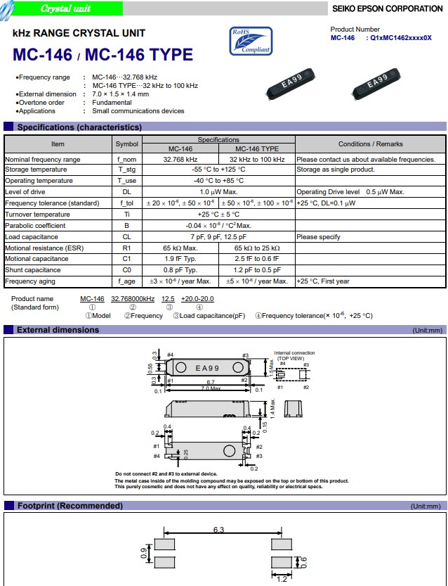智能鎖這類對精準度和數字精確要求比較高,所以都會用到進口的32.768K時鐘晶體,而且要求是±5ppm或者±10ppm這樣高的精度。我在之前的文章中提過,OfO小黃車和摩拜單車用的是精工晶振的SSP-T7-F,還有愛普生晶振的MC-146這兩種同款的石英晶體諧振器,同樣智能鎖也可以用這兩款貼片晶振。