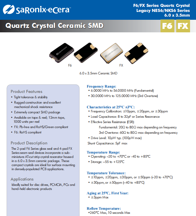 •6.0 x 3.5mm陶瓷貼片 非常適合磁盤驅(qū)動(dòng)器,PCMCIA, pc和手持電子產(chǎn)品